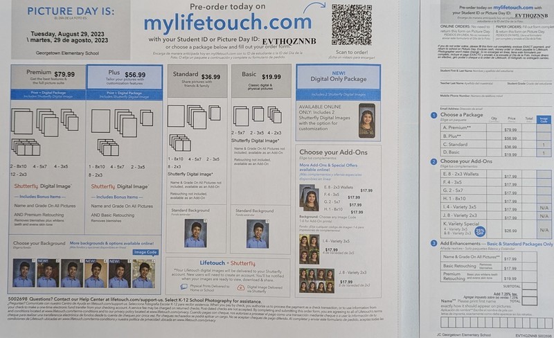 Elementary School picture day is coming up on August 29th! Pre-order your child's school pictures at mylifetouch.com using ID EVTHQZNNB.